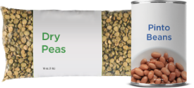 (1) envase de habichuelas/guisantes/lentejas deshidratadas y (1) lata de habichuelas/guisantes/lentejas
